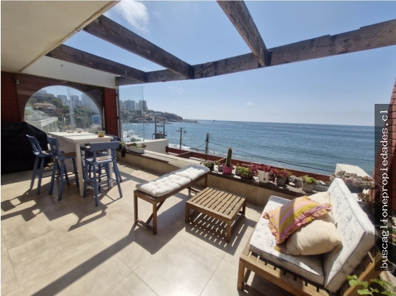 VENDE departamento de 3 dormitorios, con espectacular vista, primera línea frente al mar, en Concón!! Cuenta con 3 dormitorios, 2 baños, más bodega con 1/2 baño y conexión lavadora. Amplia terraza con maravillosa vista al mar, 1 estacionamiento de uso y goce. Piso 3, 93 m2 totales, 70 m2 útiles. Año 1981 Condomimio cuenta con áreas verdes, conserje, portón automático. Ubicado frente a playa Bahamas en Concón . Muy soleado. Gran conectividad. Valor Contribuciones: $ 54.500 Valor Gastos Comunes: $ 240.000 , app. VALOR VENTA : 6.500 U.F
